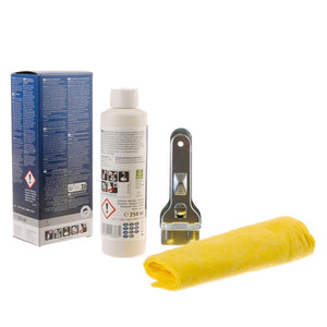 Keep your Bosch ceramic and induction hobs in top condition with this cleaning care pack. Compatible with all models, it efficiently removes grease, stains, and residue without damaging the surface. With 100% natural ingredients, it provides a safe and effective cleaning solution for your hobs. The specially formulated cleaner effectively removes oil and dirt from surfaces while leaving them with a shiny finish on cooktops. Perfect for cleaning and maintaining glass, ceramic, and induction hob cooktops surfaces. The scraper blade is ideal for removing stubborn, dried-on oil residues without causing damage to the surface.