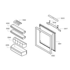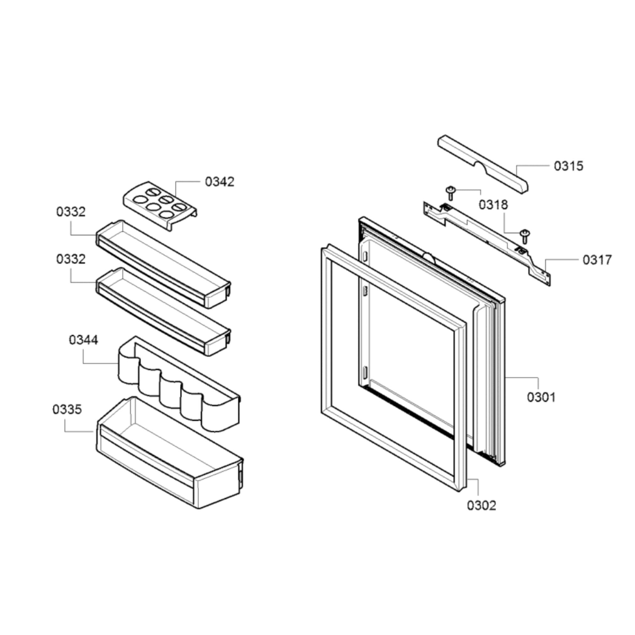 Keep your bottled beverages and other items organized with the Bosch KUR15AFF0 Fridge Refrigerator Door Bottle Bin Shelf. This sturdy shelf fits into most Bosch refrigerators and offers easy access to stored items. Its durable construction makes it strong enough to hold up to 4.4lbs of weight. Keep your fridge organized and make sure everything is easily reachable with this bin shelf. PART NO 332 ON IMAGE.
