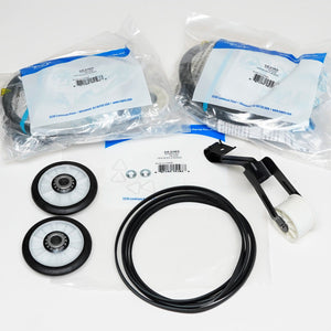 These maintenance kit are product and spare part used in Roper REX4634KQ Dryer machine model; will assist you in repair, replacement and maintenance. Package standart part number: 4392065, PS373087. This is one complete maintenance kit. The kit includes the drum belt, drum support rollers, one idler pulley, four tri-rings, and one clip. The parts are constructed of plastic, metal, and rubber.